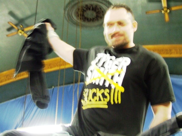 Match # 8 Singles Match Shadokat vs Tyger Smith In the next match, we had a student against teacher, Buffalo's own Shadokat against Tyger Smith. Tyger was in no mood as earlier in the night Deacon pissed him off when he showed the fans his new shirt that read like this "Tyger Smith Sucks". Shadokat took the mic to thank the fans and management of OSPW and vowed win, loose, or draw, Tyger Smith would pay for bad mouthing Buffalo, NY. Tyger Smith was greeted by a deafening chant of Tyger Sucks!! And the match was underway for the meaning less UWC Title. Shadokat wasted no time with lightening like speed striking Smith with one move after the next, but Tyger would quickly turn it all around with a little help from his huge brother Titus Smith. Things just continued to get worse and worse for Shadokat. After going to the well once too often, Shadokat missed a frog splash and was locked in the TDK and tapped out to Tyger Smith. The Winner by submission Tyger Smith Who was sent back to the locker room with another chant of "Tyger Sucks"