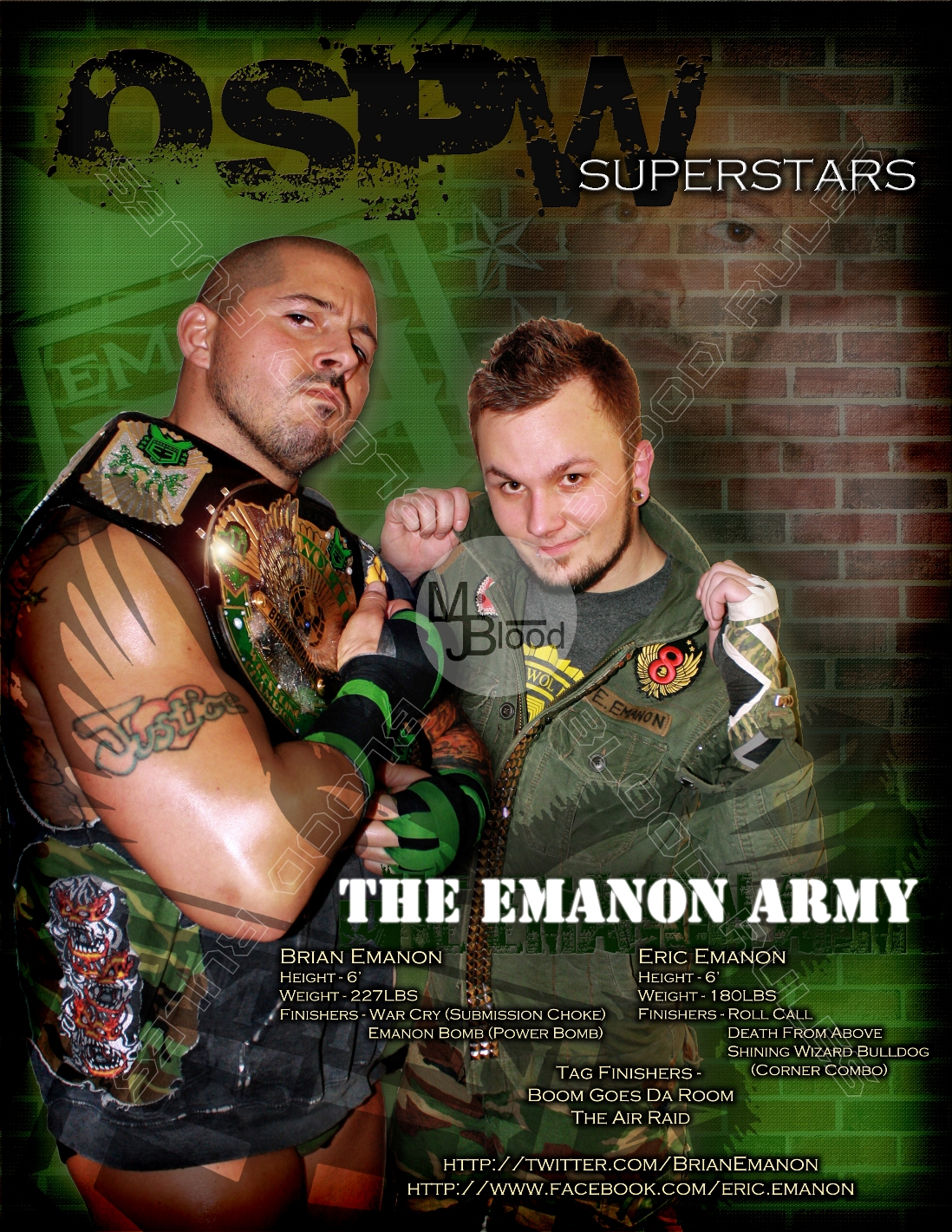 Name: Eric Emanon Height: 5`11`` Weight: 160 Lbs Home Town: Rochester NY Debut: 2007 Signature Moves: Satellite Head-scissors Finishers: Roll Call (Extreme Twist of Fate) The Emanon Bomb (Swanton Bomb) The SPI (Neck-breaker Drop) Bio: Eric started Training in 2004 and is the younger brother of the Extreme Brian Emanon like his brother Eric prides himself to be a bit of a risk taker doing what ever it takes to win Eric like his older brother Brian loves to defy gravity by jumping flipping and diving off just about everything using his body as a aerial weapon!