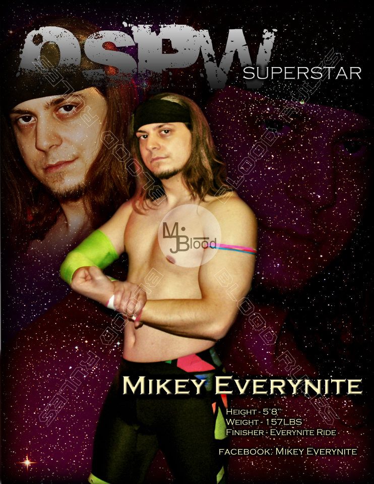 Mikey Everynite Height: 5' 9" Weight: 165lbs Home Town: South Buffalo, New York Debut: 2009 Finishers: Everynite Ride (Inside-out flip) Special Banana #3 Career Highlights: First Security Guard Wrestler BIO- Mikey may look to be a bit of an underdog to some,but do not let his size fool you. He is full of heart and huge on talent. Keep your eyes on this young man and you will see something amazing every-night. On a side note he has been voted the most handsome man in South Buffalo (10yrs running)